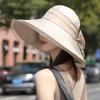 Uv Protection Women'S Beach Sun Hat Summer Wide Brim Portable Panama Cap For Woman Breathable Big Bowknot Floral Fisherman Hat
