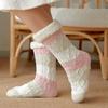 Meias de algodão de inverno mais engrossar listras confortáveis meias femininas meados de bezerro sono quente meia presente de natal casa piso tapete meias