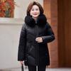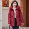 Jaqueta Feminina de Outono e Inverno Cor Sólida com Capuz Gola de Pele Moda Solta Espessa à Prova de Vento Comprimento Médio Jaqueta de Mãe