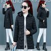 Casaco de inverno feminino moda meia idade mãe slim down algodão capuz jaqueta plus size casual sólido quente grosso outwear parka