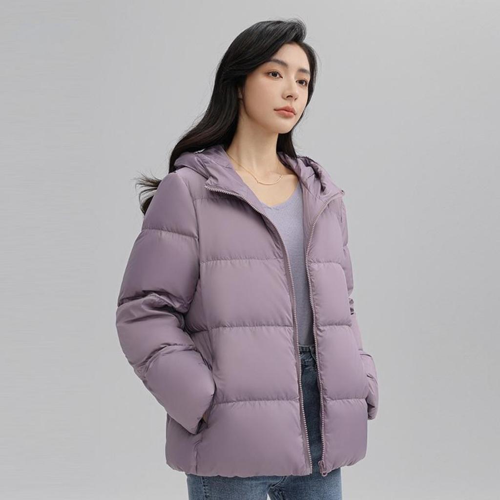 Jaqueta feminina de penas outono e inverno nova com capuz all-match estilo coreano jaqueta slim