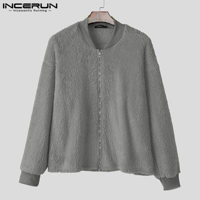 INCERUN Autumn Men Round Neck Long Sleeve Zipper Hem Pullovers Tops