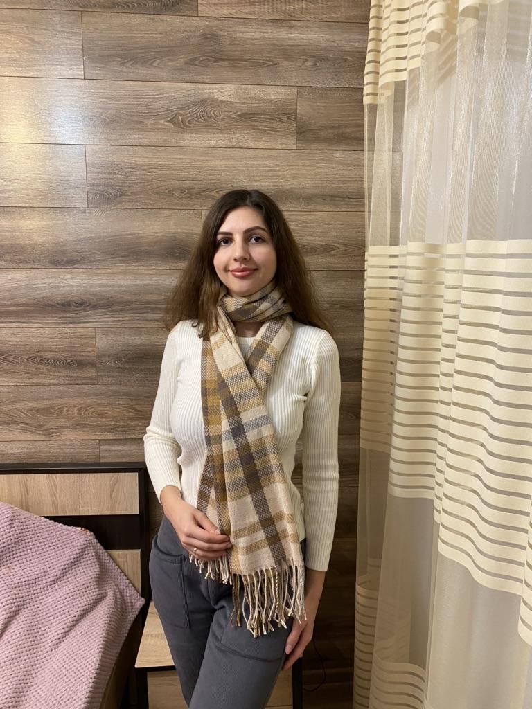 Este lenço feminino se tornou um ótimo complemento para o meu guarda-roupa! 😍 O material é macio e agradável ao toque e não irrita a pele. ✨ O design é universal, adequado para diferentes estilos - pode ser usado tanto com casaco quanto com jaqueta. A cor corresponde exatamente à da foto e a qualidade do acabamento surpreendeu agradavelmente. As costuras são perfeitas, nenhum fio sai. 👍 Ótima escolha para uso diário!🥰