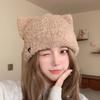 Novo Y2k Cat Ear Beanies Quente Proteção de Orelhas Pelúcia Tricô Chapéu Soft Love Bordado Quente Chapéu Outono e Inverno