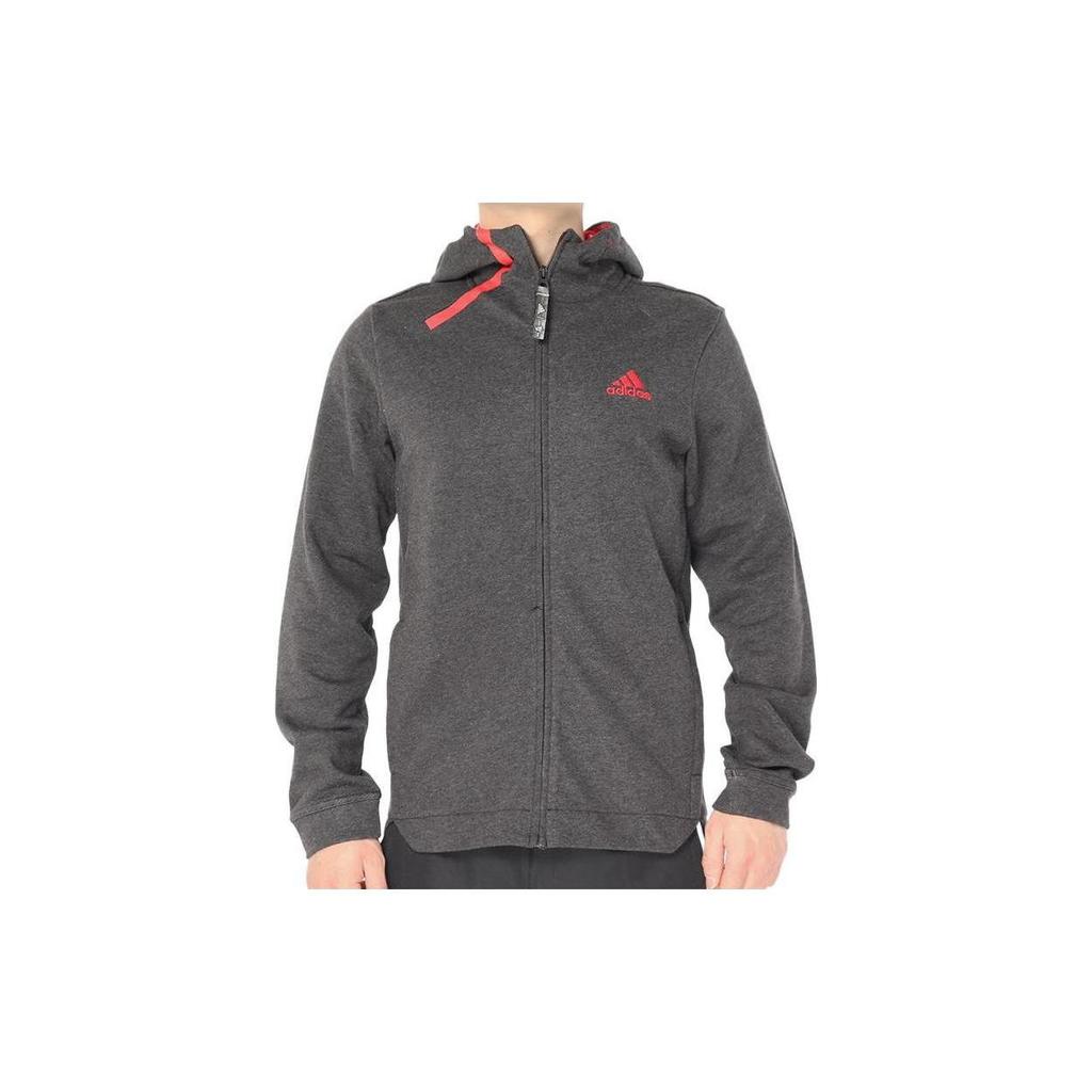 Adidas Solid Color Logo Print Hooded Knit Sports Jacket Men Jacket Gray CG0868