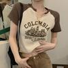 GMXIA Spice Girls V-neck manga curta camiseta feminina verão doce e picante design retro curto estudante tops