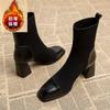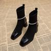Botas de Cavalo Femininas Ins Pontudas Rosa Botas Skinny Inverno Novas Botas de Couro Envernizado Grossas com Salto Alto da Moda Botas Curtas
