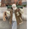 Jaqueta de beisebol solta com emenda de cores contrastantes para mulheres outono