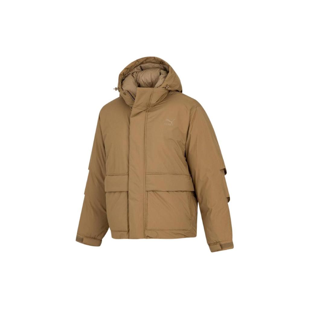 Puma Jaqueta Casual com Capuz e Penas de Cor Sólida com Estampa de Logotipo Jaqueta Masculina Marrom 933446-03