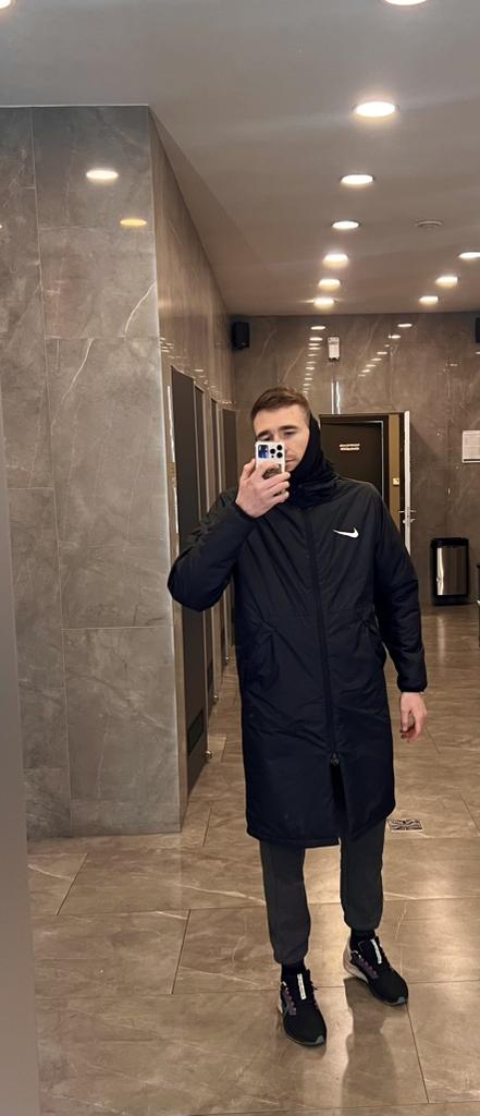 Nike Jaqueta de algodão com capuz quente de comprimento médio, cor sólida, masculina, preta, CW6767-010