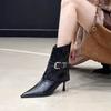 fashion Ladies Shoes 2024 High Quality Side Zipper Women's Boots Fashion Belt Buckle Office and Career Sexy Pointed Toe Mid-Calf Boots
