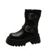 fashion women's boots round toe mid heel shoes for women outdoor fashion platform shoes zip metal decoration mid-calf goth modern boots