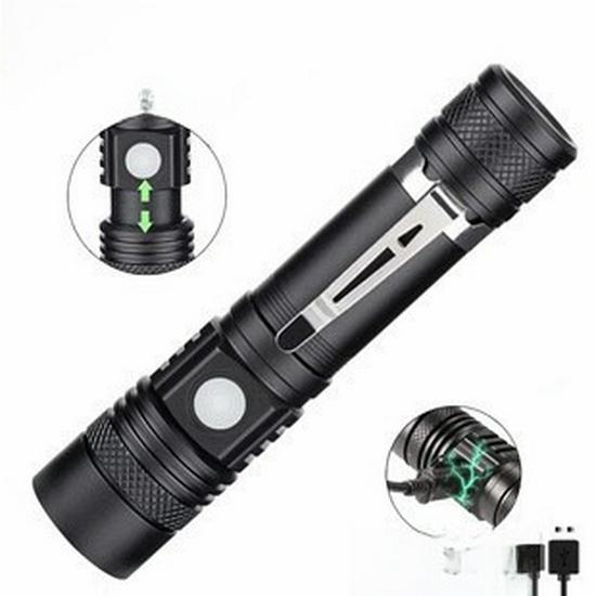 T6 Long-Range LED Aluminum Alloy USB Rechargeable Zoomable Flashlight.