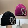 Chapéus Gorros de Lã com Diamantes e Letras de Pelo de Coelho Genuíno para Mulheres Chapéu de Tricô Quente de Inverno Marca Famosa Boné Casual Feminino Gorro de Esqui