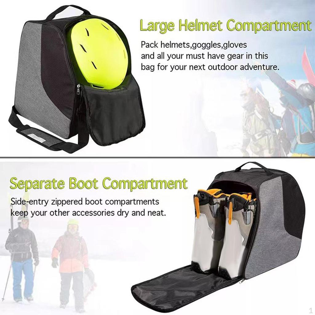 - Material: Feita de tecido oxford, esta bolsa para botas de esqui de inverno foi projetada para resistir a condições climáticas adversas e manter seu equipamento seco