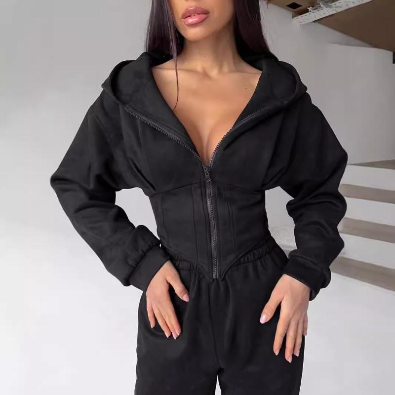 Design de jaqueta curta de rua europeia e americana para garota gostosa com modelagem de cintura tipo espartilho e moletom com zíper emagrecedor