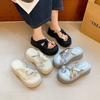 Fashion Platform Sandals Summer New Rhinestone Bow Cross Line with Slippers Waterproof Platform Women's Shoes