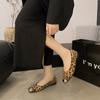 Moda 2024 Novos saltos baixos femininos One Kick Leopard Print Metal Biqueira decorativa Sola de borracha resistente ao desgaste Confortável e respirável