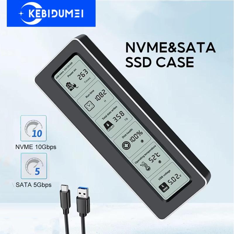 Gabinete SSD de protocolo duplo M.2 NVME/NGFF com tela de exibição Adaptador SSD USB tipo C para caixa de disco SSD NVME PCIE NGFF SATA