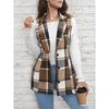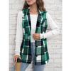 GMXIA Jaquetas e casacos femininos vintage casuais xadrez estampa outono inverno sem mangas gola polo