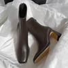 Botins Femininos de Bico Quadrado Elegantes Salto Alto Sapatos de Couro Mulher Inverno 2025 Tendência Festa Sapatos de Escritório Fad Chunky Botas Mujer