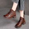 Botas de couro legítimo feitas à mão, sapatos femininos de outono à prova d'água, sapatos femininos com cadarço, oxfords, botas femininas de bico largo, botas de pelúcia para mamãe