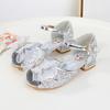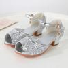 Sandálias infantis de salto alto elegantes com glitter para festa de casamento, moda casual infantil, princesa, lantejoulas, novas sandálias