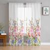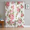 Vintage Pink Hibiscus Flower White Sheer Curtains for Living Room Decoration Window Curtain Kitchen Tulle Voile Organza Drapes