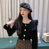 Suéter de Gola Grande Pessoa Pequena com Mangas Evasê Gola Tricô Base Cardigan Gola Boneca Top Doce