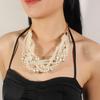 Colar de pérolas de imitação exagerada para mulheres, moda elegante, corrente de clavícula, design vintage, colares com brincos