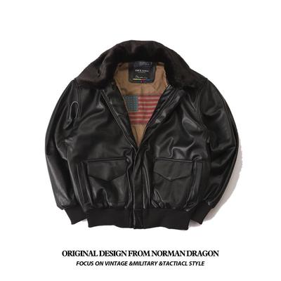 Jaqueta Aviador A2 Retrô Masculina Normanlong - Couro Militar Americano da Guerra do Vietnã com Gola de Pele e Forro de Algodão