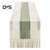 Vibes Boho Minimalistas: Transforme a configuração da sua mesa com este caminho de mesa de estilo boêmio com listras vazadas de algodão bege fino e detalhes de franjas. Adote uma estética minimalista misturada ao charme boêmio para uma experiência gastronômica elegante.