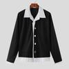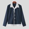 INCERUN Primavera Homens Lapela Pescoço Manga Longa Listrado Patchwork Camisas Botões Veludo Cotelê Tops