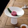 White Ceramic Plate Tall Feet Refreshment Tray Round Dried Fruit Snacks Plate Fruit Tray Tableware Dish Dessert Plates Cake Pan