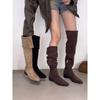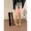 French Thick Heel Apricot Suede Piled Boots Women'S Shoes Spring And Autumn Winter Versatile Thin Long Boots