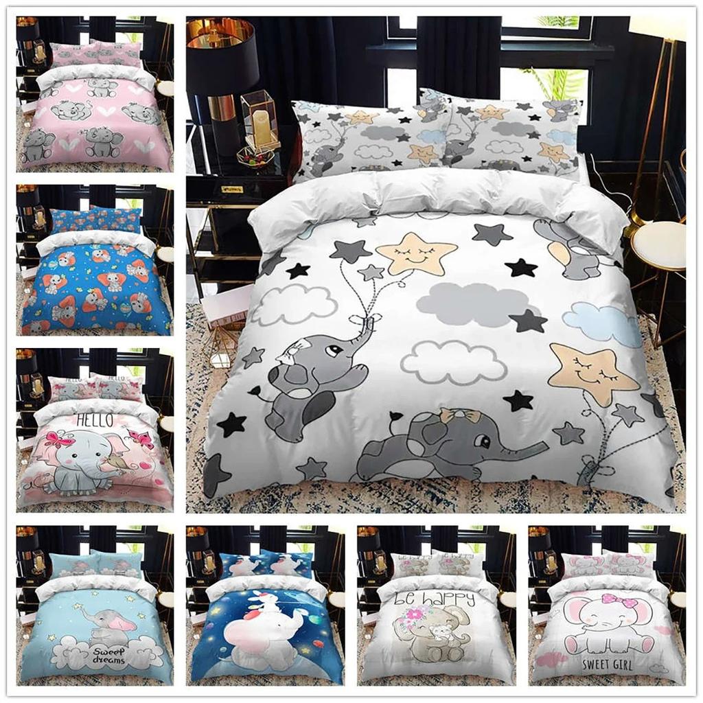 Animal elefante Desenho animado crianças conjunto de capa de edredom queen calico Tamanho Twin conjunto de roupa de cama edredom Solteiro conjunto completo