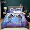 Capa de edredom de anjo com desenho animado, conjunto de cama com asas de anjo, capa de edredom floral de microfibra, tamanho king size para decoração de quarto de meninas