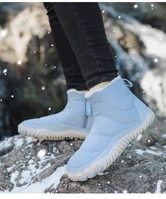 Sapatos descalços de inverno para homens e mulheres, botas de inverno, botas de neve, antiderrapantes, resistentes à água, botinhas de cano curto, forro de pele sintética, botas esportivas para caminhada ao ar livre