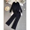 Conjuntos de 2 peças de moletons de malha com capuz para mulheres, conjuntos casuais de malharia, tops de pulôver, conjuntos coreanos de cintura alta, malhas, calças de perna larga, fato