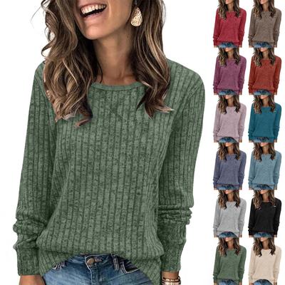 Outono Mulheres malhas Roupas Senhoras Casual Gola Redonda Escovado Pit Stripe Pullover Cor Sólida Top Manga Longa T-shirt