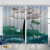 Cortinas de sombra estilo chinês para sala de estar, quarto, decoração para casa, tinta de lótus, impressão digital, cortinas finas