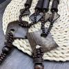 Colar longo étnico retrô nepalês com madeira de asa de frango e contas Bodhi - acessório de moda unissex