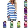 Moda casual feminina listrada com decote em V manga comprida moletom leve pulôver com bolsos moletom