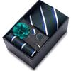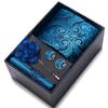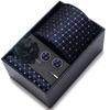 The set includes tie, square scarf, cufflinks, black gift box, and corsage.