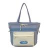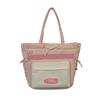 Bolsa de Ombro Estudante Bolsa de Nylon para Meninas Contraste de Cores Bolsa Tote de Grande Capacidade