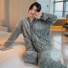 Conjunto de pijamas de lã coral outono inverno casal casual roupa de casa feminina flanela quente lingerie íntima roupa de dormir masculina roupa de dormir