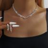 Conjunto de duas peças de brincos de colar de diamante completo brilhante de luxo, conjunto de brincos versáteis e elegantes