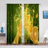 2 painéis Limão Frutas Folhas Verdes Cortinas de Tinta para Quarto Sala de Estar Decoração Cortina para Cozinha Casa Cortinas Haste Bolso Gancho