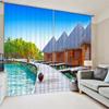 Cortinas de Janela com Fotos Exquisitas de Vista para o Mar, Cortinas com Padrão de Paisagem Marinha Natural para Sala de Estar, Quarto, Porta, Casa, Novo Padrão 2 peças