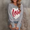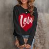 Suéter feminino de manga comprida com gola redonda e letras de amor